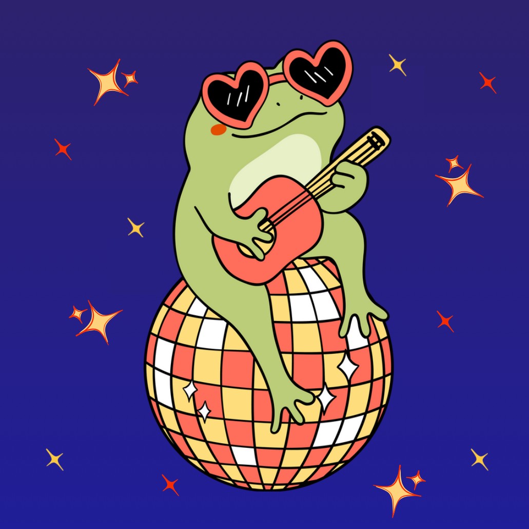 Oetel op rood-wit-geel discobal